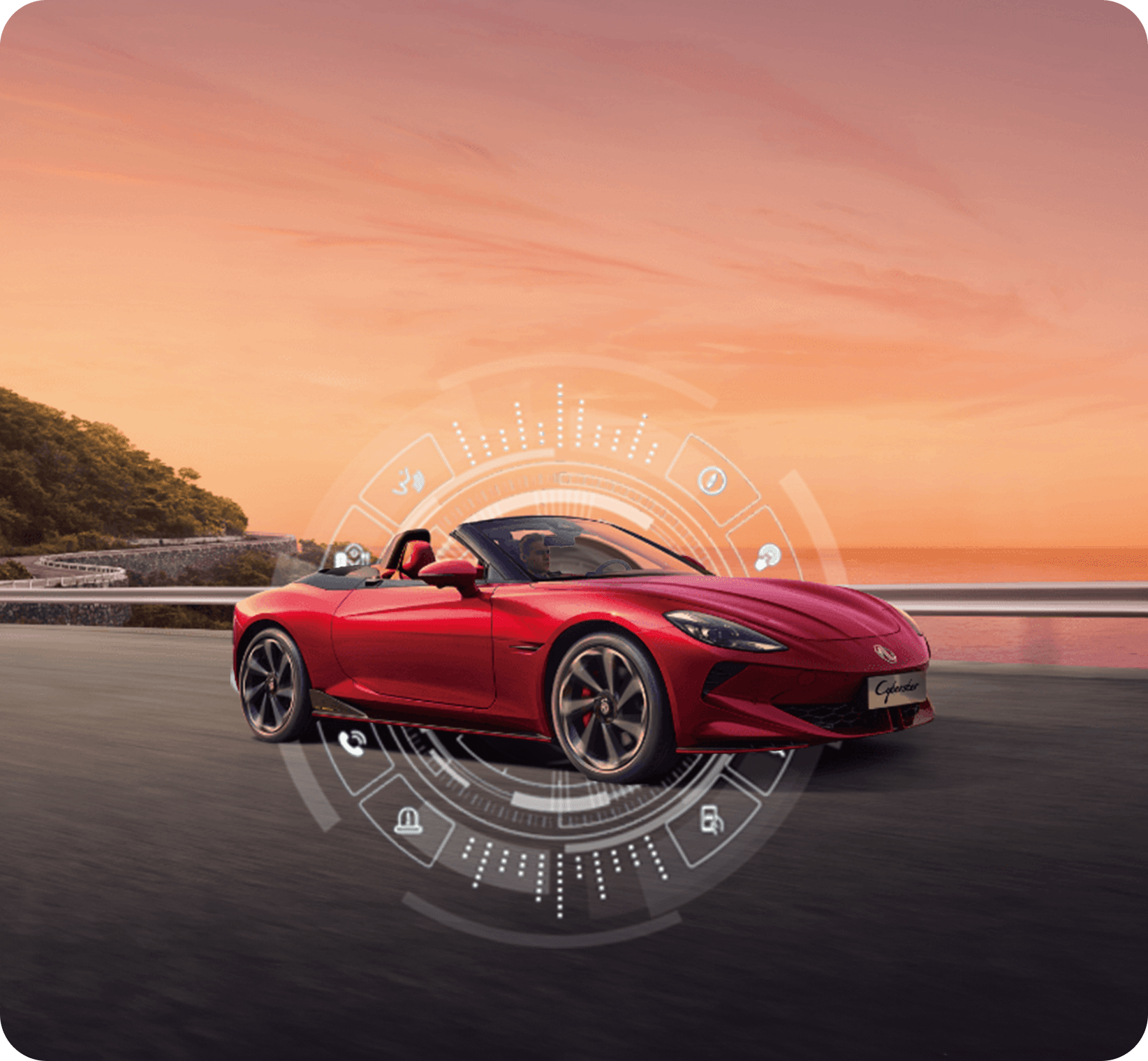 i-SMART transforms your MG Cyberster drive with advanced technology. Enjoy effortless control over various functions through hands-free voice commands, while staying connected through seamless car-internet integration.